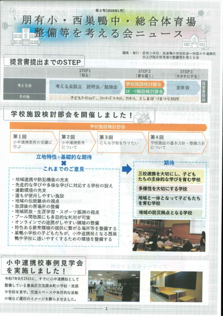 (3)豊島区教育委員会より朋有小・西巣鴨中の連携、併設についてのお知らせ。