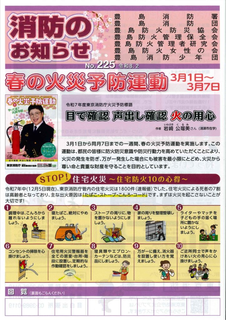 (1)豊島消防署からのお知らせ「春の火災予防運動」等について
